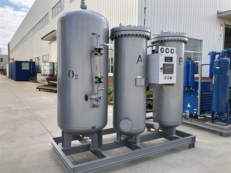 變壓吸附制氧裝置以潔凈的壓縮空氣為原料,采用高品質(zhì)的沸石分子篩作為吸附劑,在一定的壓力下,從空氣中制取氧氣。經(jīng)過純化干燥的壓縮空氣,在吸附器中進(jìn)行加壓吸附、減壓脫附。由于空氣動(dòng)力學(xué)效應(yīng),氮在沸石分子篩微孔中擴(kuò)散速率遠(yuǎn)大于氧,氮被沸石分子篩優(yōu)先吸附,氧在氣相中被富集起來,形成成品氧氣。然后經(jīng)減壓至常壓,吸附劑脫附所吸附的氮?dú)獾入s質(zhì),實(shí)現(xiàn)再生。一般在系統(tǒng)中設(shè)置兩個(gè)吸附塔,一塔吸附產(chǎn)氧,另一塔脫附再生,通過PLC程序控制器控制氣動(dòng)閥的啟閉,使兩塔交替循環(huán),從而取得純度較高的氧氣(93%±3%)。